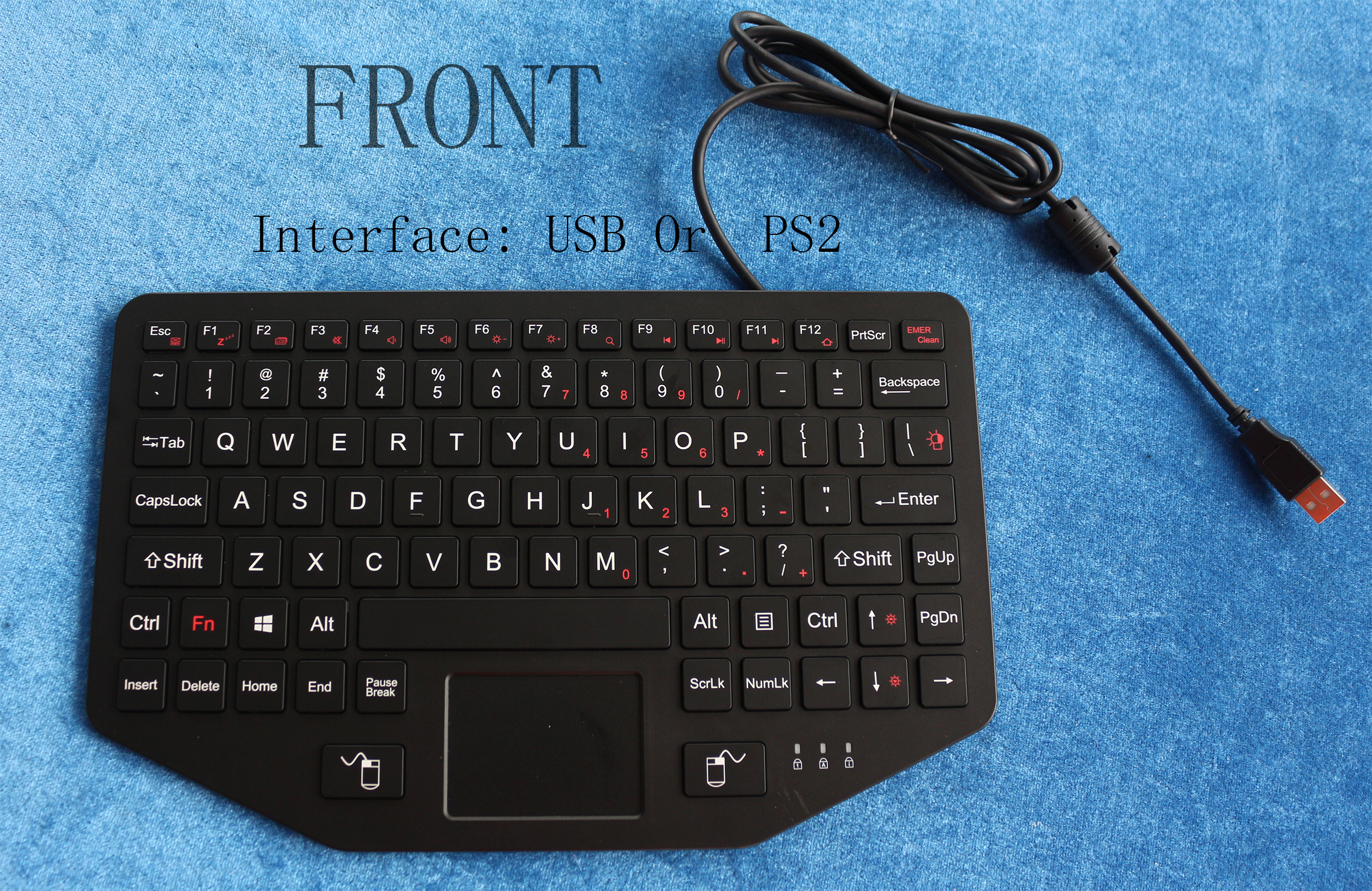 Industrial Rugged Vehicle Keyboard with Touchpad Backlit USB PS/2 fn Keys